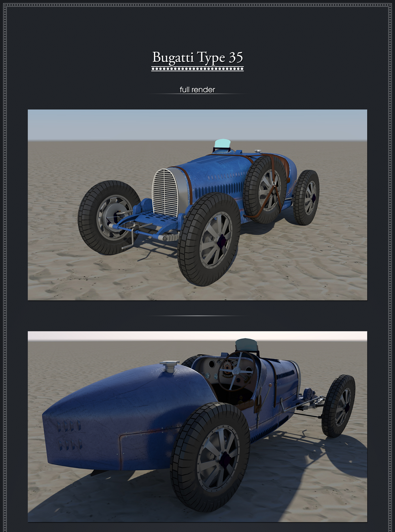 Hard surface modeling of Bugatti Type 35 using Autodeks Maya.